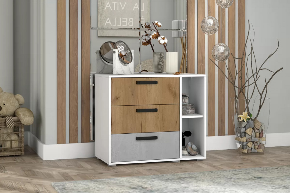 Комод "Юпитер" идеально впишется в современный интерьер молодежной комнаты. Его ящики снабжены шариковыми направляющими полного выдвижения для плавного хода и удобства пользования.