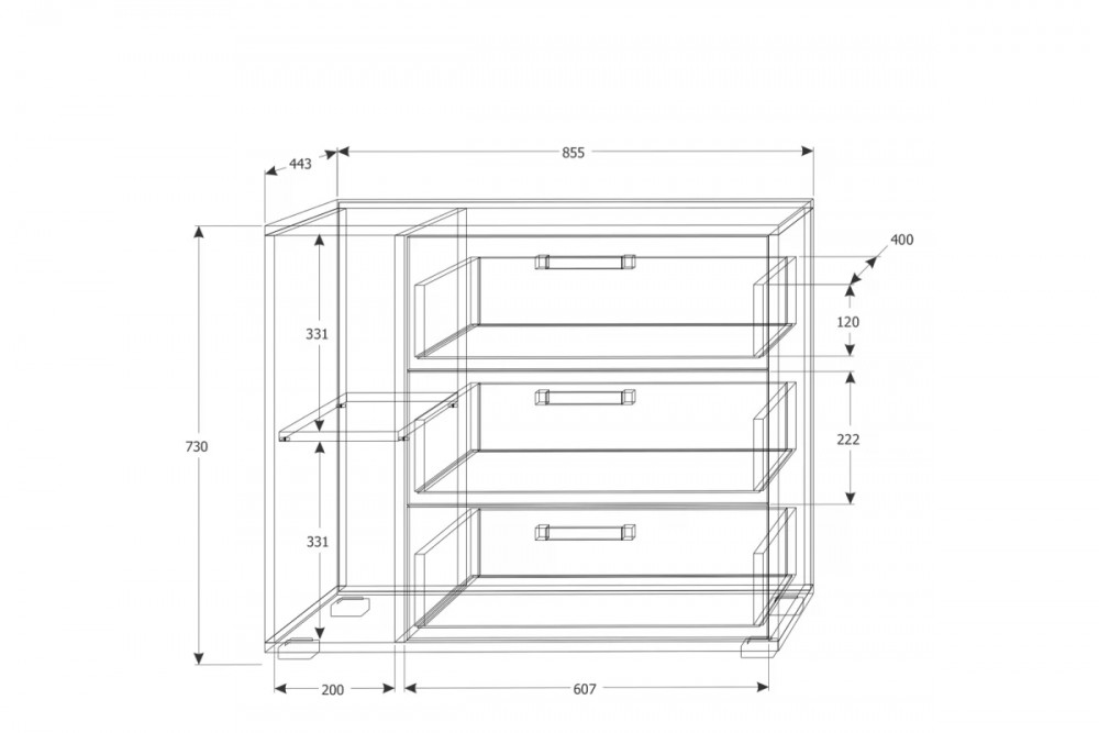 Глубина ящиков: 400 мм