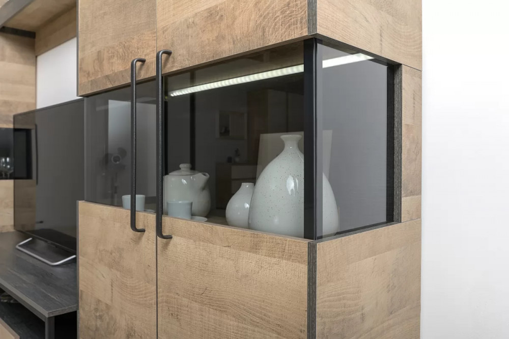Комод с витриной Трувор 13.306 будет отличным дополнением интерьера любой комнаты. На полках, скрытых за стеклянными вставками, будут гармонично смотреться наборы посуды, бокалы, интересные и увлекательные книги, семейные фотографии, коллекции интересных предметов, оригинальные сувениры, статуэтки и детские поделки. За глухими частями дверей можно хранить более ценных и важные предметы, а также одежду и белье. Индустриальная мебель Трувор выполнена в стиле лофт.