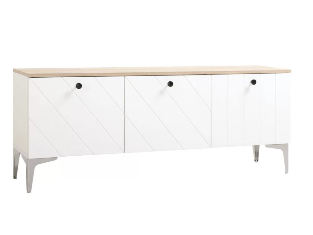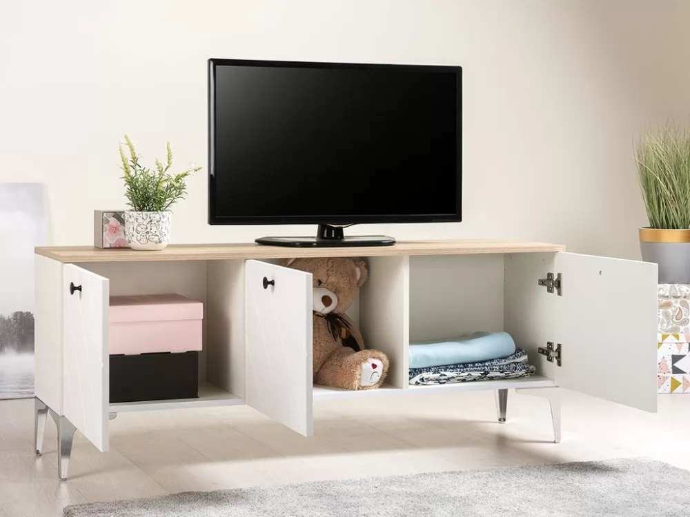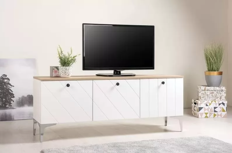 Тумба под ТВ 13.267.03 будет отличным дополнением интерьера любой комнаты. Изделие поможет разместить телевизор для более комфортного просмотра новостей, сериалов и различных телепередач. Полки, скрытые за распашными дверьми, пригодятся для хранения большого количества различных вещей и предметов. Стильные металлические ножки зрительно растворяются в окружении и создают особую иллюзию "парящей" тумбы.