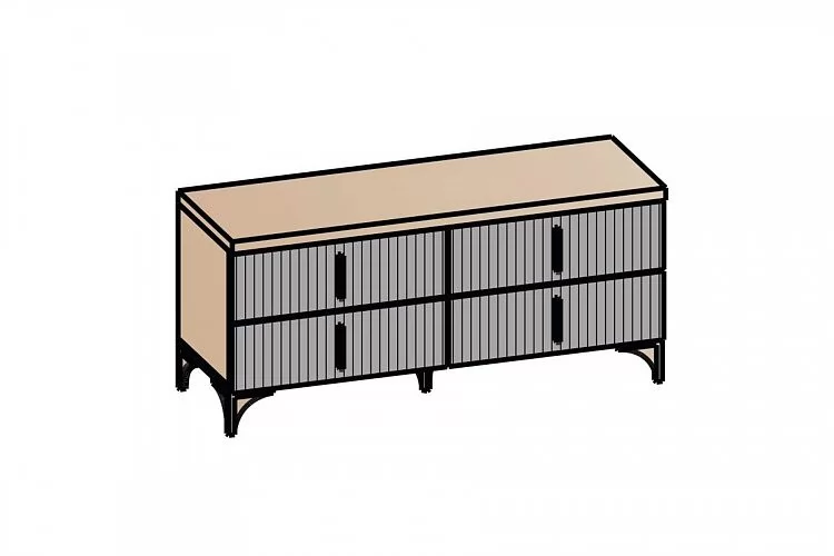 Мебель изготовлена из высококачественного материала ЛДСП — 16 мм, класса эмиссии Е1. Фасады с оригинальной фрезеровкой изготовлены из МДФ 16 мм под пленкой ПВХ в цвете Айронвуд серебро и Лофт голдэн пэлас. Тумбы декорированы крышкой толщиной 32 мм и облицованы кромкой 2 мм.