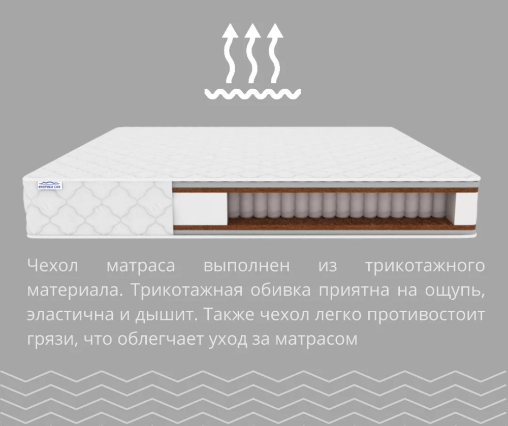 • Чехол в обивке из трикотажа: Обивка  легко снимается и стирается, что облегчает уход за матрасом.
