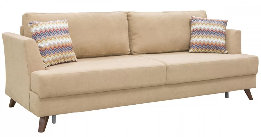 Лаконичный и элегантный диван легко впишется в любой современный интерьер. Из нескольких вариантов обивки вы легко сможете подобрать цветовое решение, подходящее именно вам. Высокие подлокотники и декоративные подушки обеспечивают комфортную посадку.