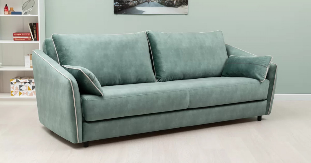 Габаритысложенный (Д x Г х В, мм): -2260 x 1090 x 920разложенный (Д x Г х В, мм): -2260 x 1340 x 750спальное место (Д x Ш, мм): -1980 x 1340высота посадки (мм): -445глубина сиденья (мм): -600высота спинки (мм): -560высота подлокотника от сиденья (мм): -150-300максимально допустимая нагрузка: -240 кг на диванМеханизм трансформации-Книжка с 0 стенойБельевой ящик-есть с перегородкой по центру (2 отделения)размер отделения (Д x Ш, мм): - 890 x 840 x 140Материалыосновная ткань: Greta (велюр)выполняется в тканях: Greta Jade (светлый хвойно-зеленый)/Greta Bone (слоновая кость)каркас: фанера-деревянный брус ДСП ДВПприспинные подушки, шт: -2съемные чехлы приспинных подушек: -естьдекоративные подушки, шт: -2наполнитель подушек: -крошка ППУ и полиэфирное волокно «шарики»цвет опор: -Опора регулируемая, круглая, чернаявысота опор (мм): -60Декор-Подлокотники с выраженным контрастным кантом по внешнему контуру изделия. Декоративные подушки оформлены декоративной отстрочкой «зигзаг».