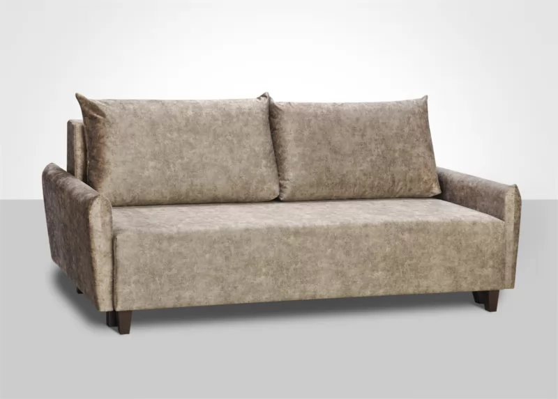 Стиль “ЛОФТ”. Узкие подлокотники, комфортные подушки со съемными чехлами, широкое спальное место.