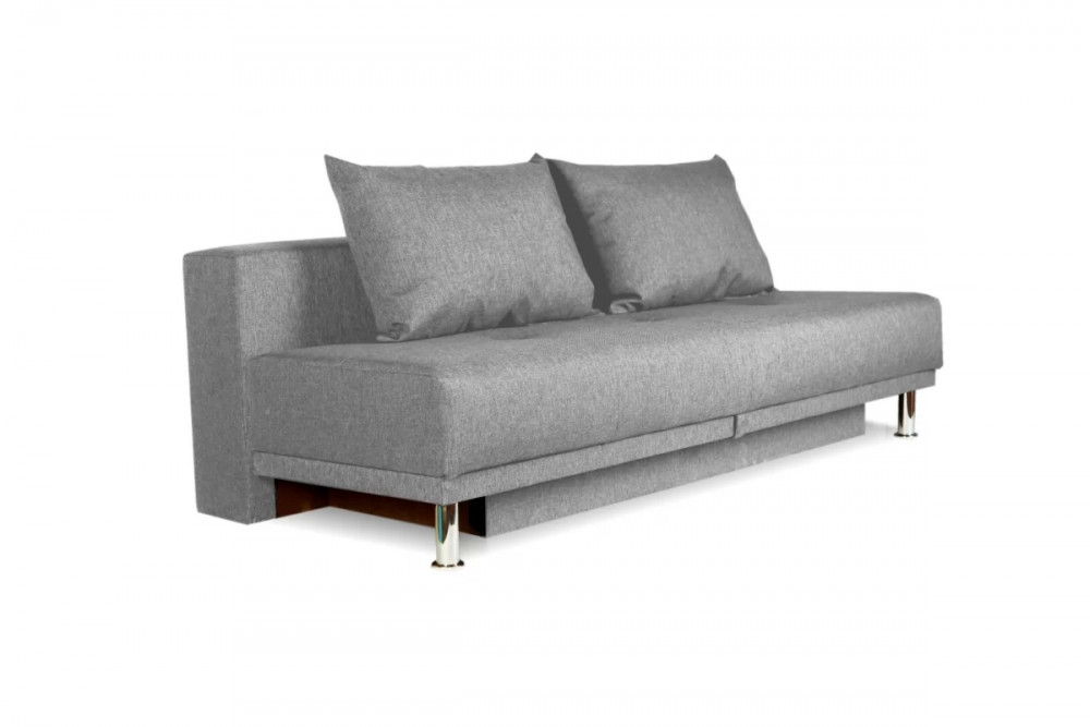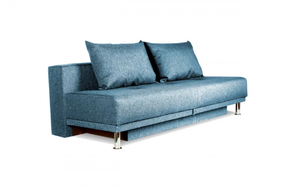 Трансформация дивана в спальное место происходит по принципу «еврокнижка»: сиденье выдвигается вперед, а подушка спинки опускается в образовавшееся пространство.