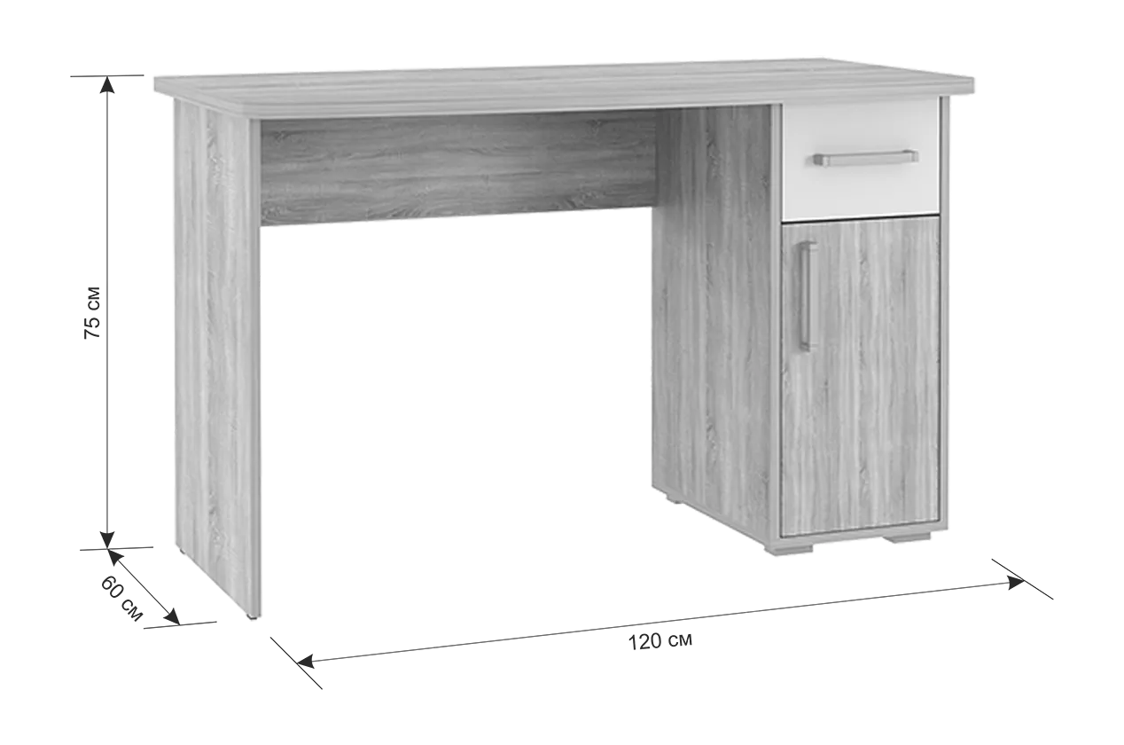 Стол компьютерный 1200 Лайт-1 дуб сонома/белый