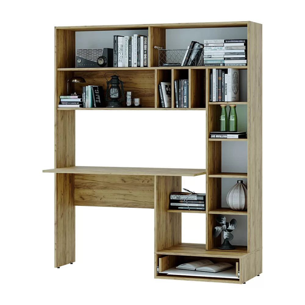 -в комплектацию входит столешница, верхние и боковые ниши, спрятанные за дверцы, нижний выдвижной ящик и открытые полки, -разместить необходимые предметы, включая технику, не составит труда, -цветовое решение позволит модели вписаться в современный интерьер, особенно в стиле лофт.