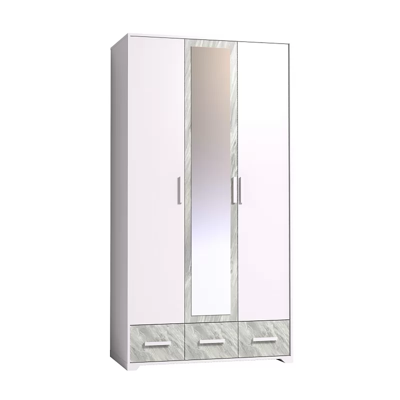 Трехстворчатый шкаф для одежды и белья Айрис 444 с зеркалом и выдвижными ящиками — находка для большой и маленькой спальни. Функциональное наполнение шкафа разделено, что очень удобно для зонирования гардероба всех членов семьи. Шкаф оснащен отделением для хранения белья с полками на скрытых полкодержателях и отделением для одежды со стационарной штангой 758 мм. 3 выдвижных ящика комплектуются шариковыми направляющими, что обеспечивает минимальный люфт ящиков и максимальное использование их площади. Петли с доводчиками для бесшумного закрывания дверок шкафа. Зеркало на фасаде шкафа.