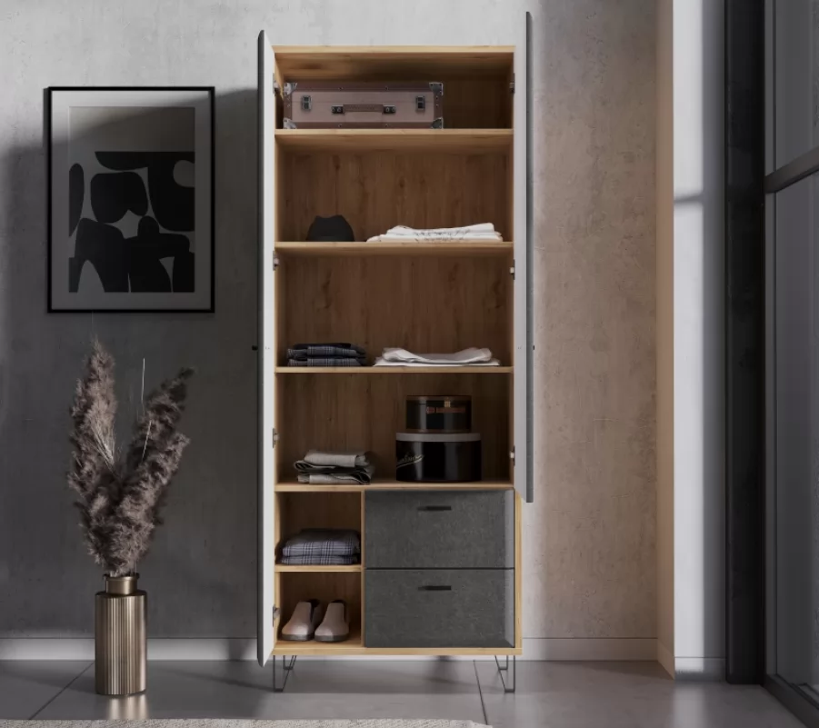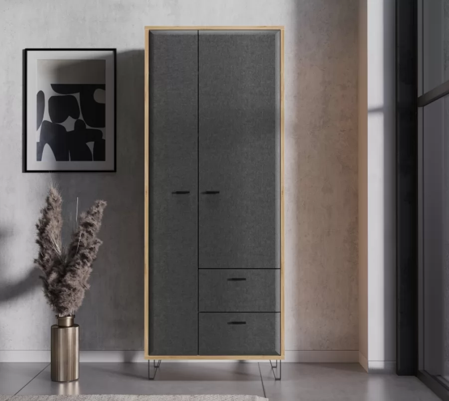Двустворчатый шкаф Grace дуб наварра/графит SZF2D2S дополнит собой прихожую, спальню или детскую.