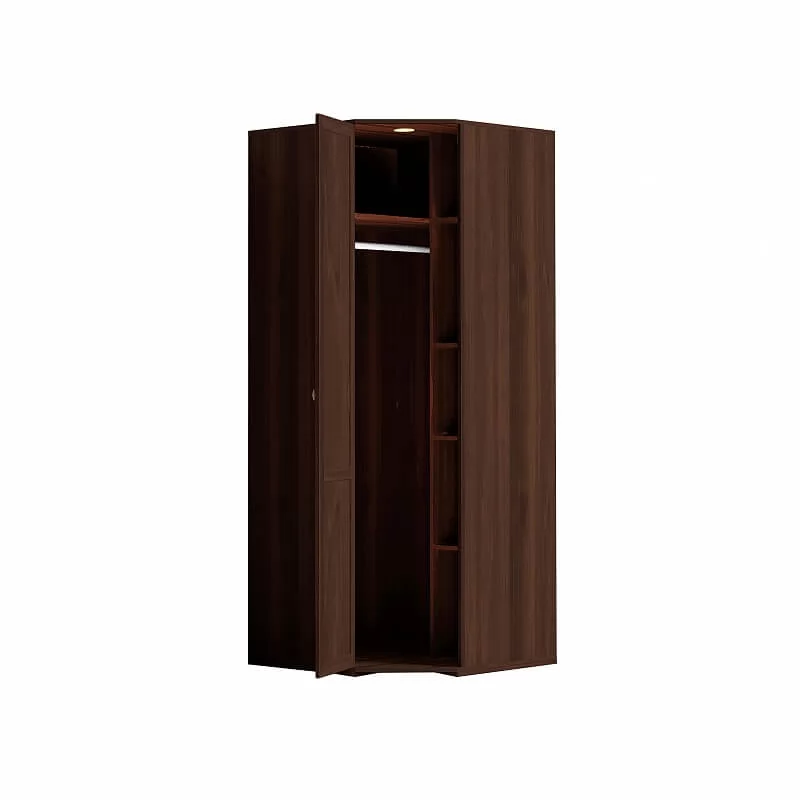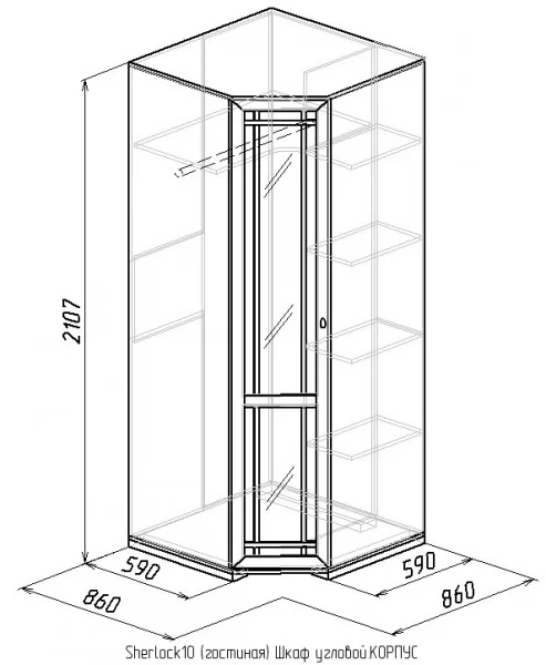 Шкаф угловой Sherlock оснащен верхней полкой и штангой для вешалок-плечиков под ней, а также четырьмя небольшими боковыми полками для одежды и белья. Такой шкаф не только идеально впишется в любой интерьер вашей комнаты, но и поразит вас своей практичностью и вместительностью. Угловой шкаф оснащен стационарной штангой длиной 81 см, полочками для белья и беспроводным светодиодным светильником, который включается при открывании двери. Установить такой светильник стало еще проще, потому что он крепится на крышку шкафа на магнитах - и не нужно возиться с проводами!