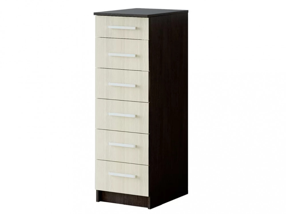 - компактный размер изделия вместит в себя большое количество вещей за счет шести выдвижных ящиков, - верхнее отделение меньше остальных и прекрасно подходит для хранения мелочей, - комод Фиеста выполнен из ЛДСП высокого качества в контрастных цветах венеге и лоредо, - украшают модель удобные широкие ручки.