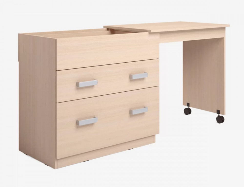 Комод-трансформер "Для увлечений" с выдвижной столешницей и дополнительным ящиком. Высота, как у обычного стола - 750 мм. Удобный вариант для небольших квартир - для комфортной работы за ноутбуком и занятий рисованием или рукоделием, в детскую.