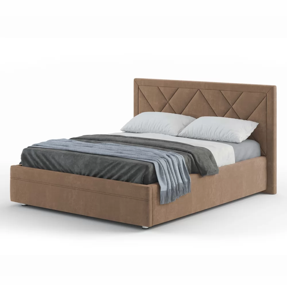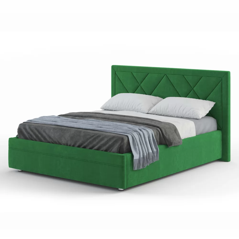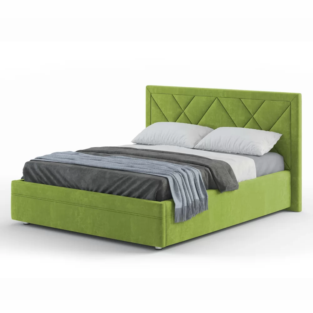 Эксклюзивная модель с мягким изголовьем, украшенным трендовым геометрическим дизайном. Такая модель на сегодняшний день пользуется большой популярностью у покупателей. Обладает всеми основными преимуществами, которые присутствуют у популярных моделей Marta и Jessica, т.е.: полный набор доступных опций, малый и большой ортопедический настил, сплошной настил из ЛДСП, комплектация подъемным механизмом.