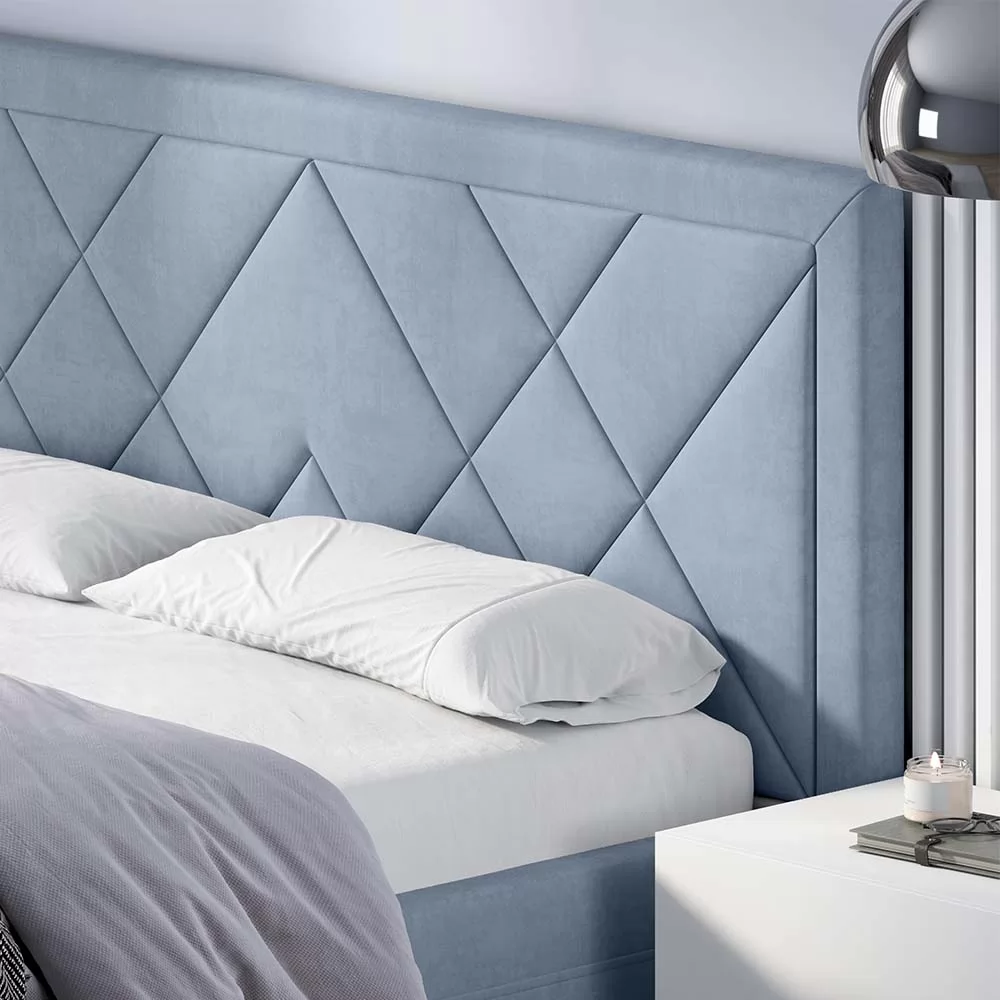 Эксклюзивная модель с мягким изголовьем, украшенным трендовым геометрическим дизайном. Такая модель на сегодняшний день пользуется большой популярностью у покупателей. Обладает всеми основными преимуществами, которые присутствуют у популярных моделей Marta и Jessica, т.е.: полный набор доступных опций, малый и большой ортопедический настил, сплошной настил из ЛДСП, комплектация подъемным механизмом.