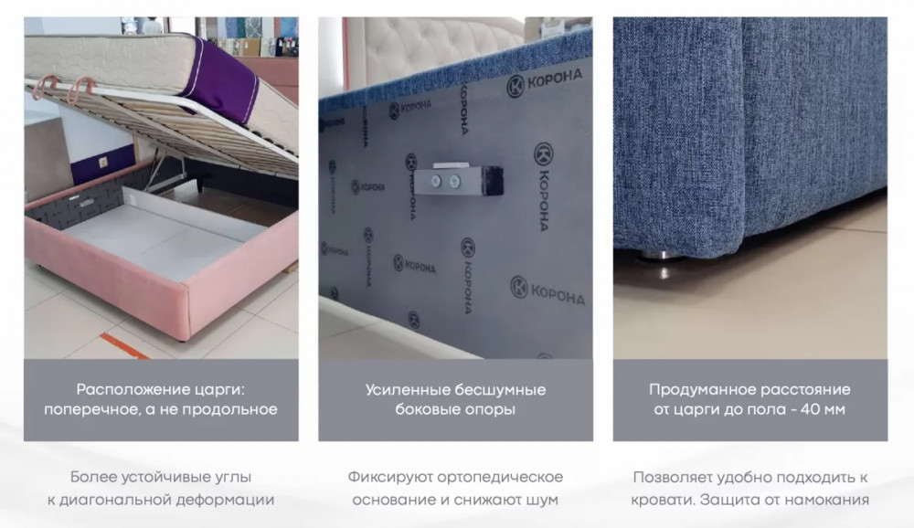 Cпинка оптимальной высоты, благодаря чему кровать хорошо будет смотреться в спальной комнате как с невысокими, так и с высокими потолками.