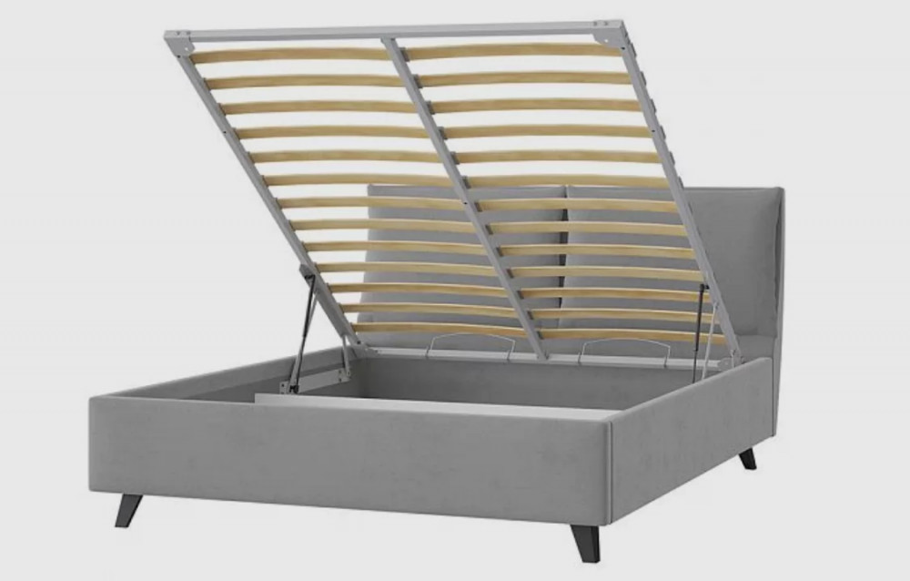Кровать комплектуется ортопедическим основанием "Профи" с подъёмным механизмом и бельевым ящиком.