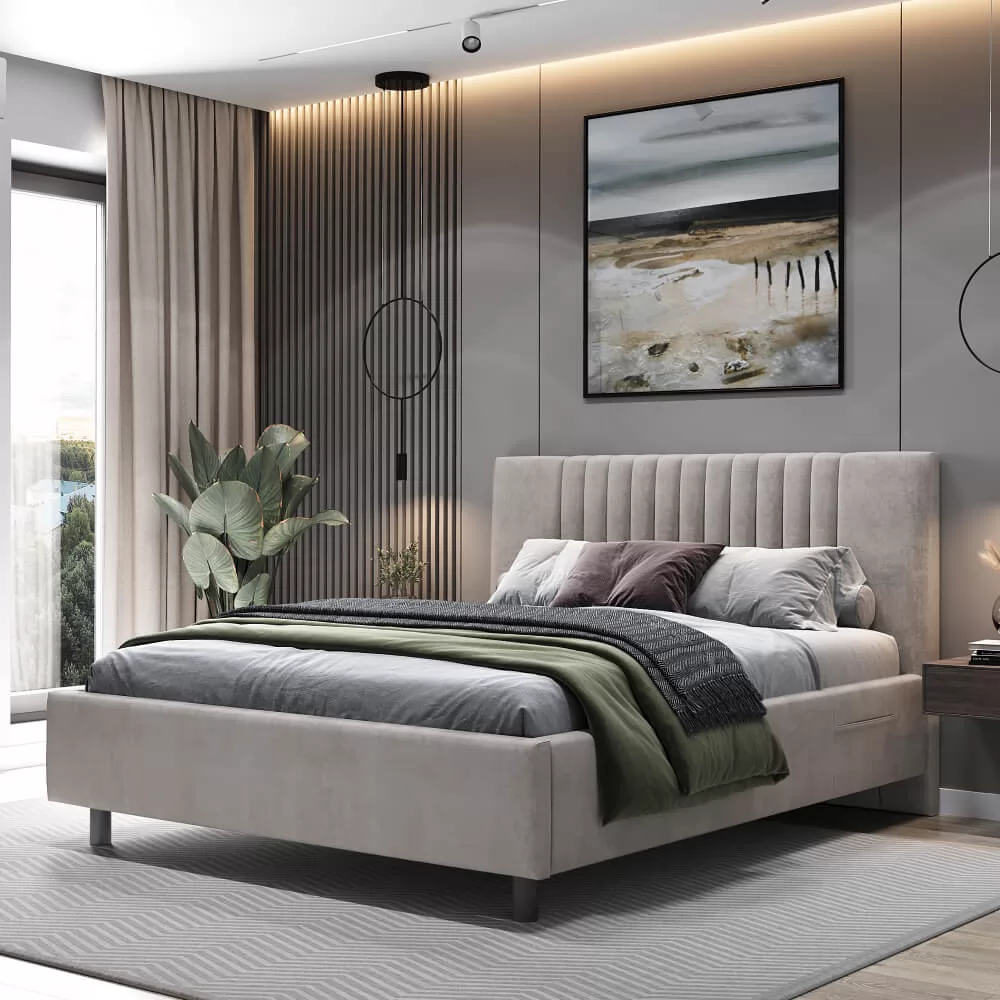 Дизайн с вертикальными линиями изголовья, разбавят монотонность интерьера.