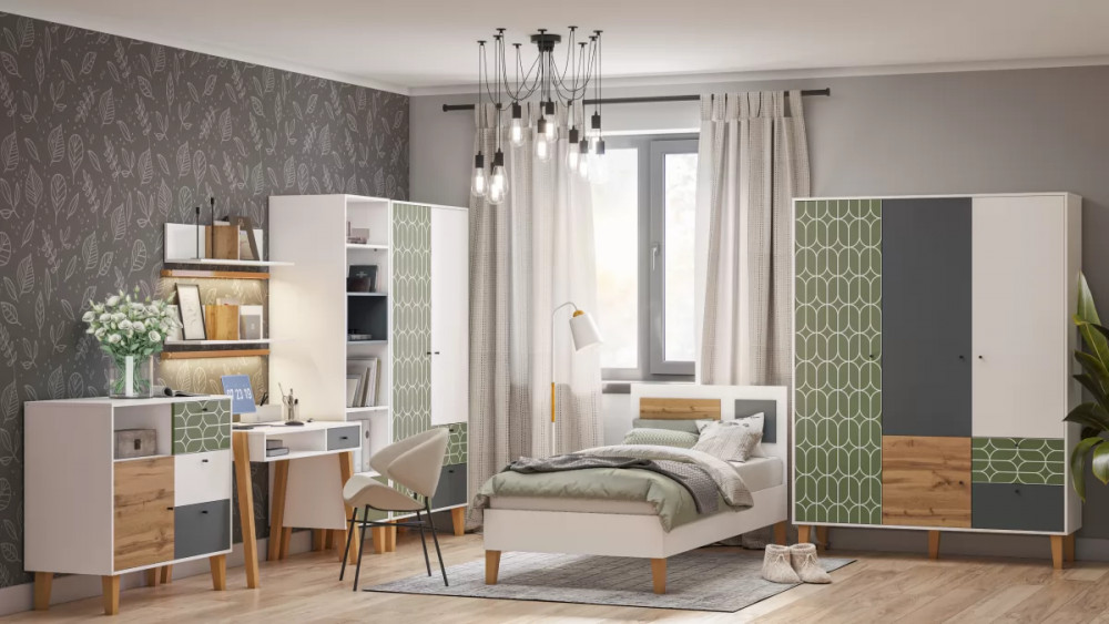 Белый/Тёмно-серый/Дуб Вотан