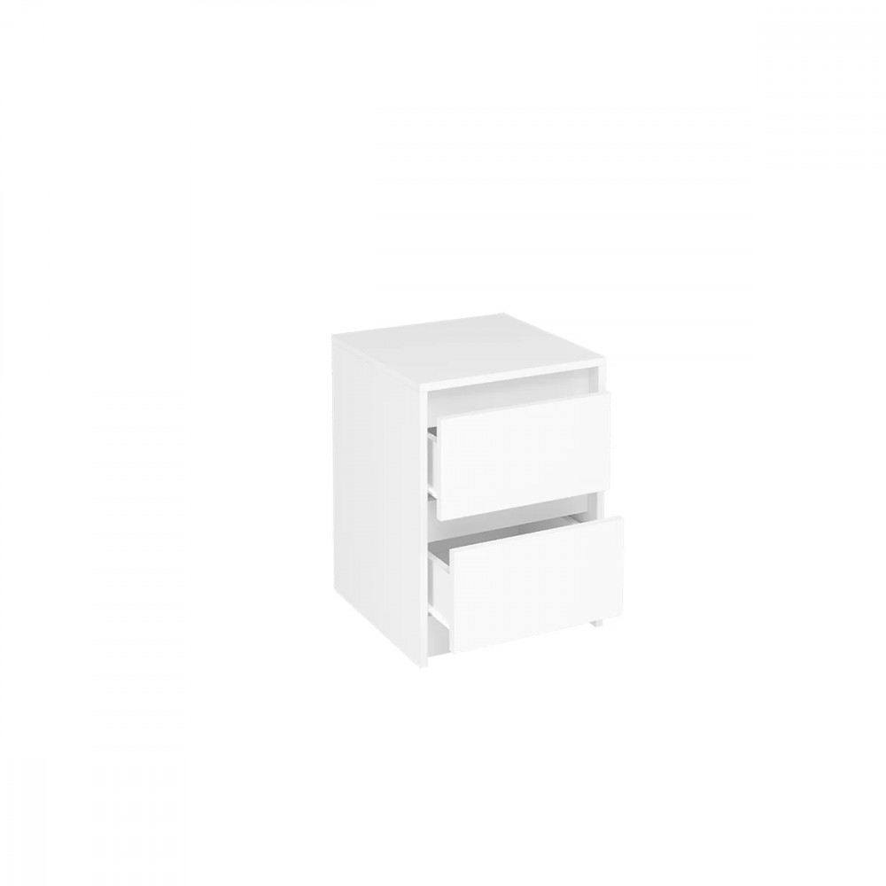 Лицевая фурнитура на тумбе отсутствует. Ящики открываются с помощью захвата рукой.