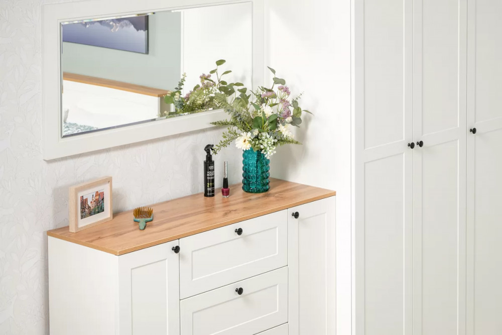 Доступна в двух цветовых решениях – белый/графит в сочетании с теплым древесным декором.