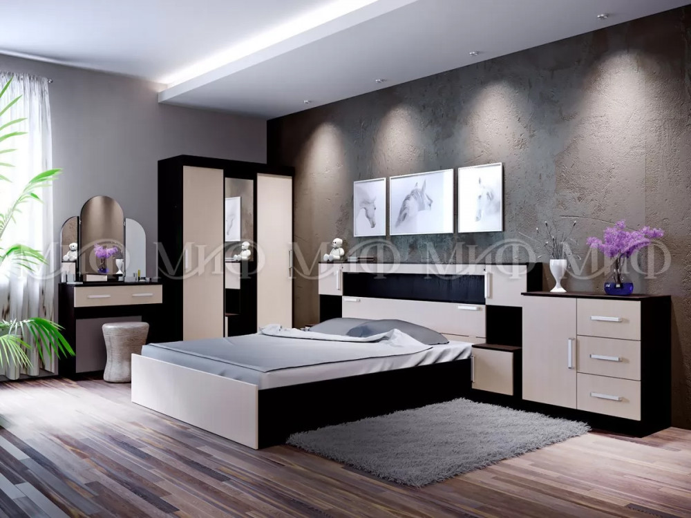 Спальный гарнитур Басямиф, дуб беленый/венге в Югорске
