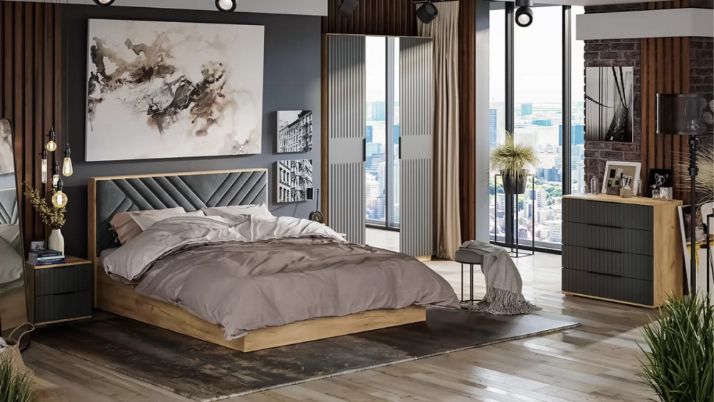 Спальный гарнитур «Хилтон» стандартный Дуб Крафт золотой, Графит матовый