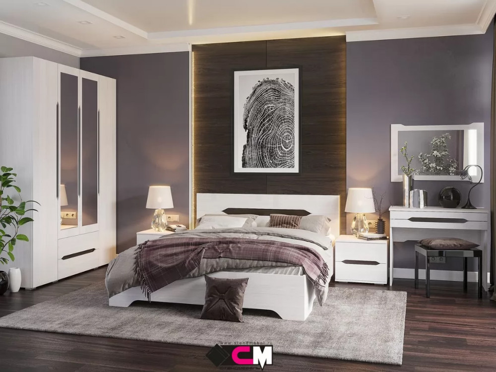 Спальный гарнитур Валенсия от производителя Стендмебель изготовлен из современного качественного ЛДСП.