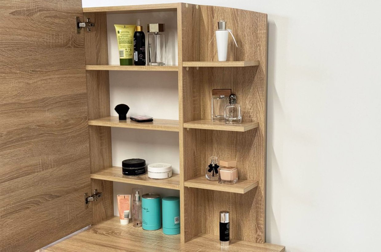 Виктория-1 – это не просто Трюмо. Это место, где каждая деталь важна. С его помощью вы сможете организовать все необходимое: от косметики до аксессуаров. Удобные отделения, выдвижной ящик и просторные полки сделают использование столика максимально комфортным.
